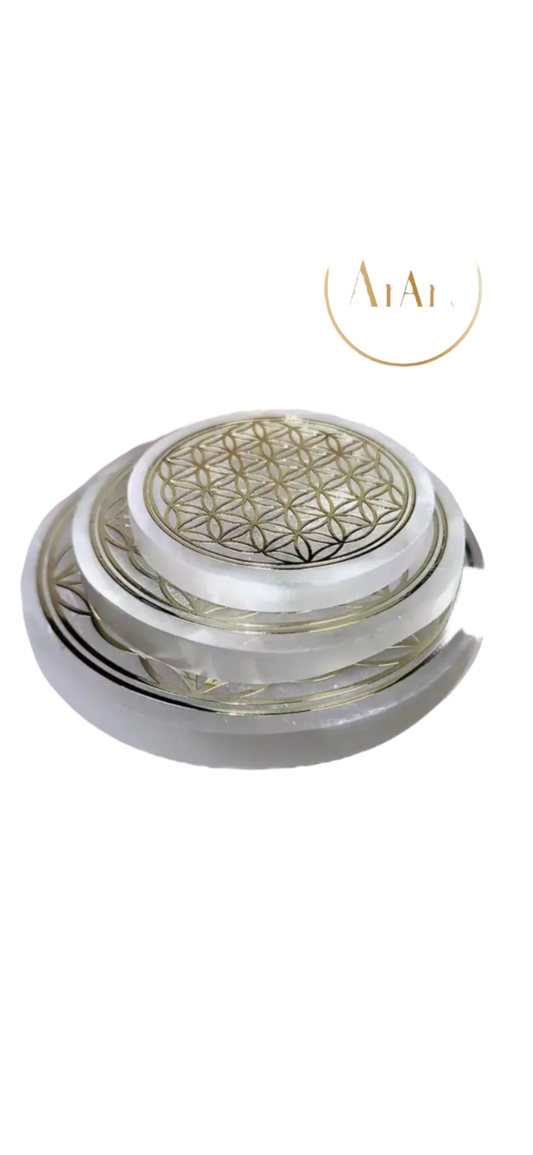 Selenite Slab With Flower Of LIfe
